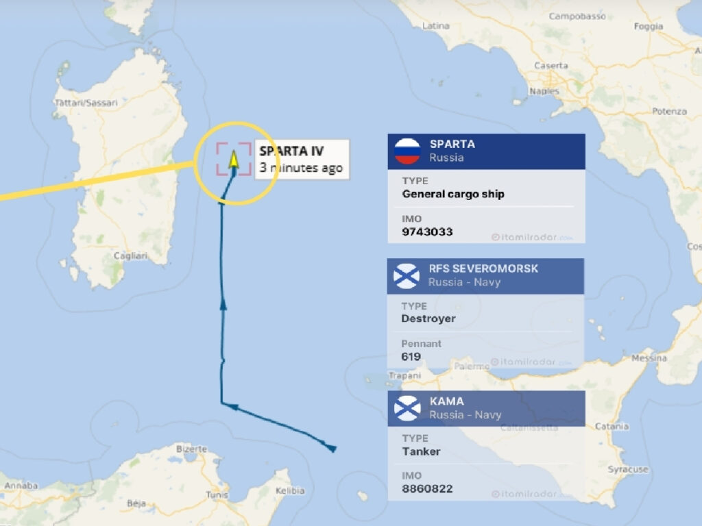 La presenza di unità navali appartenenti alla Federazione Russa nel cuore del bacino del Mediterraneo continua a mantenere altissimo il livello di allerta delle autorità italiane e dei vertici della Nato. Al centro di un monitoraggio costante e minuzioso vi è la Sparta IV, una nave cargo specializzata nel trasporto di materiali bellici, che nelle ultime ore è stata localizzata a una distanza compresa tra le quindici e le venticinque miglia nautiche dalla costa orientale della Sardegna. Sebbene la navigazione avvenga tecnicamente in acque internazionali e non configuri, almeno formalmente, una violazione dei confini marittimi nazionali, la traiettoria anomala e la natura stessa del convoglio impongono una sorveglianza ravvicinata che non ammette distrazioni. La Sparta IV non sta navigando in solitaria, essendo scortata dal cacciatorpediniere Severomorsk, un’unità risalente all’epoca sovietica lunga oltre centosessanta metri, e dalla petroliera Kama, fondamentale per garantire i rifornimenti di combustibile necessari a sostenere la missione.